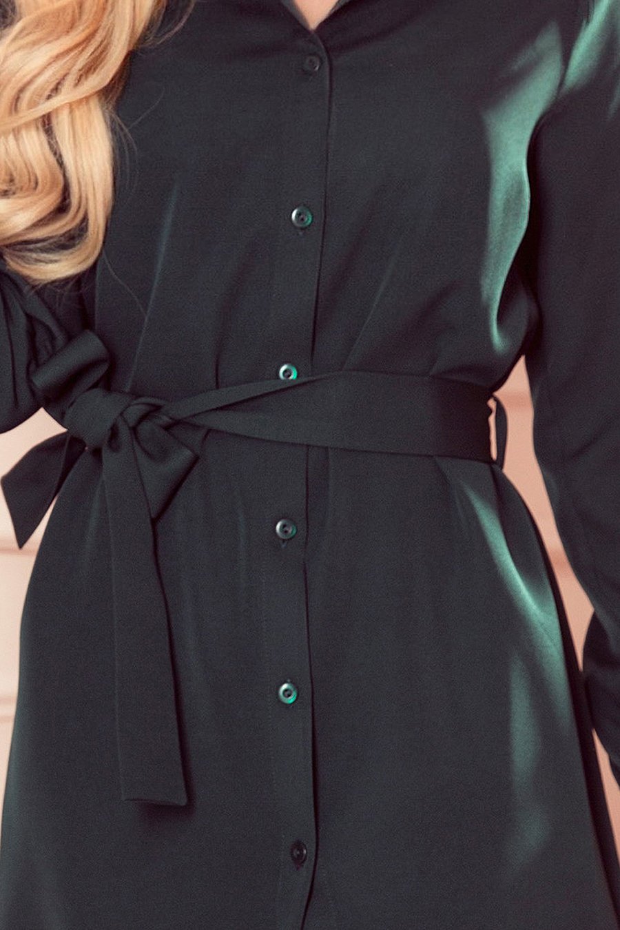 288-2 Koszulowa sukienka z guzikami – ZIELEŃ BUTELKOWA