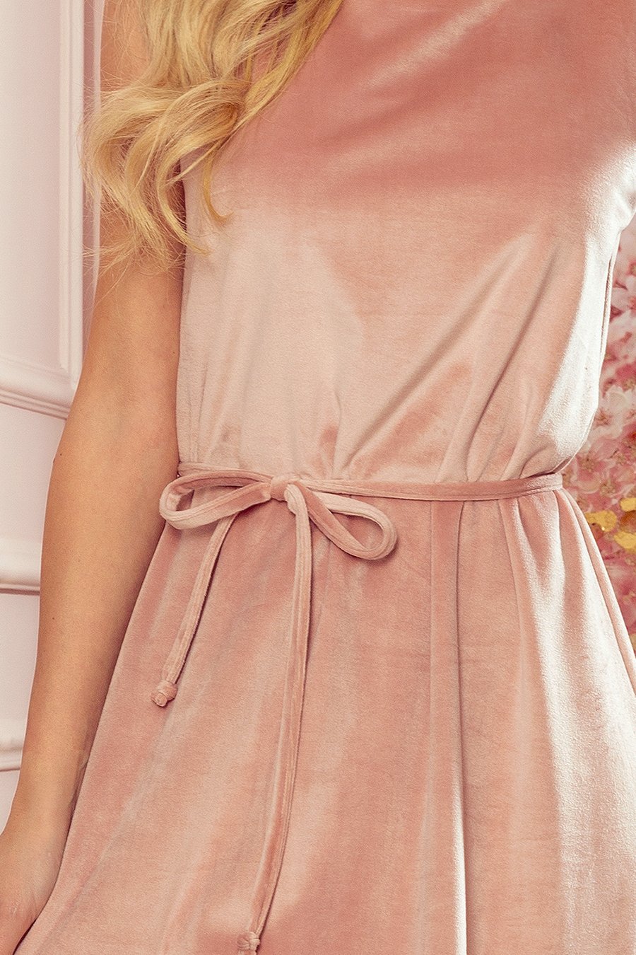 296-7 VICTORIA Trapezowa sukienka – WELUR – BRUDNY RÓŻ