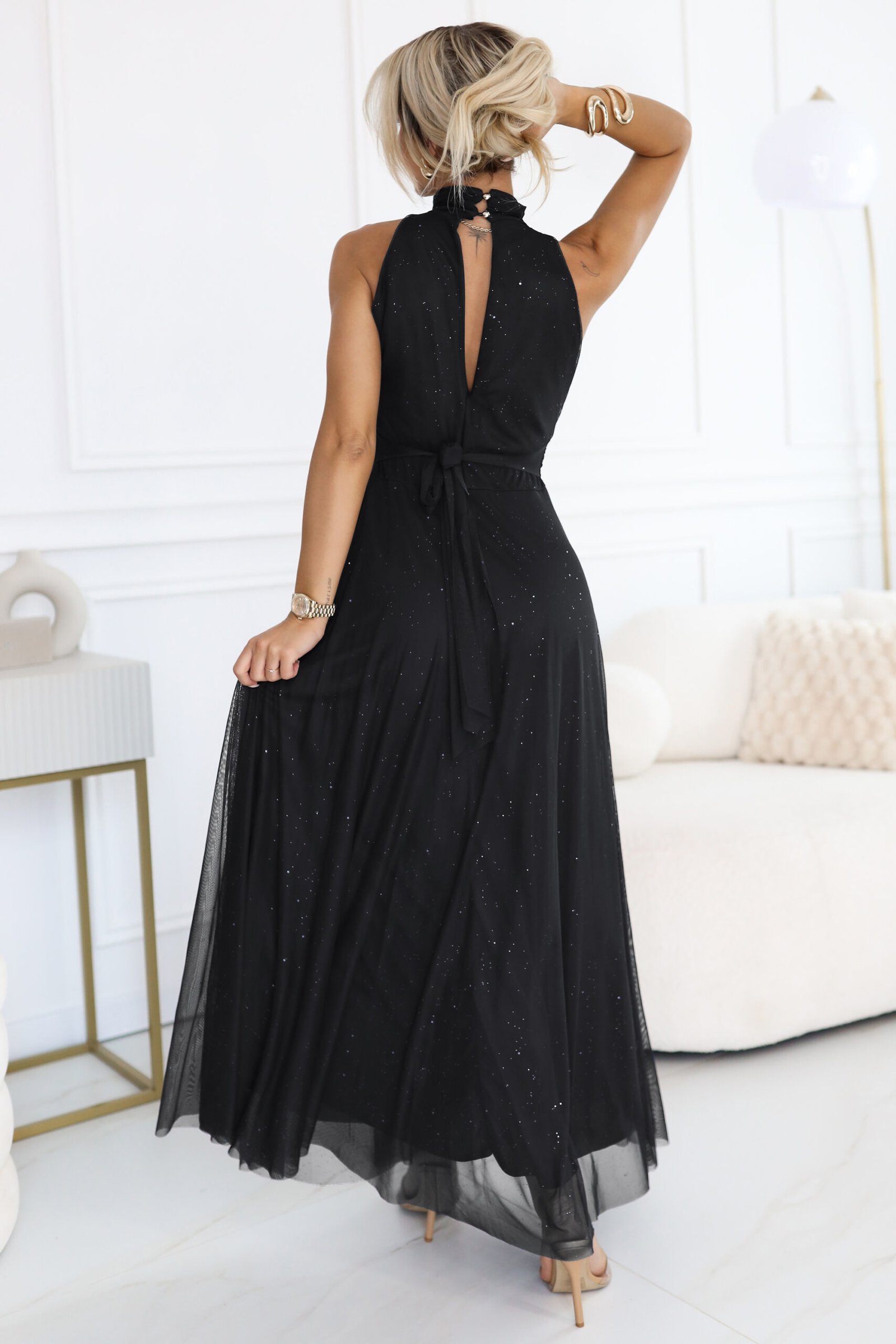 - Ekskluzywna suknia maxi z połyskiem